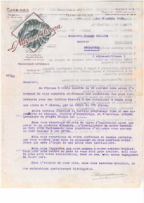 Correspondance entre les Etablissements Magnat-Simon Frères et Joseph Gilloux, minotier à Entraunes - 1912. (I)