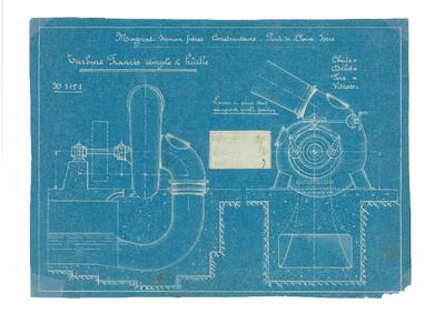 [Entraunes - Schéma d'installation de la turbine simple à huche du moulin - 1912]
