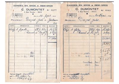 [Ensemble de factures de C. Dumontet, grossiste en viandes à Nice - 1951]