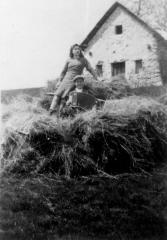 [Fenaison à la faucheuse mécanique, Bouchanières, début des années 1950.]