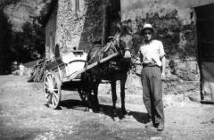 [Jeune homme et tombereau attelé, Bouchanières, août 1951.]