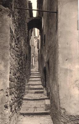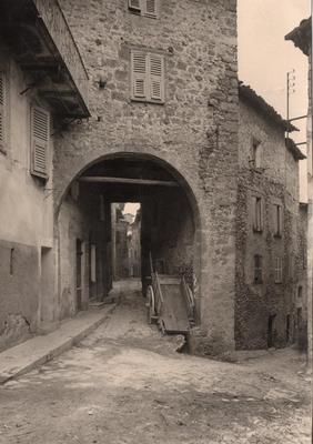 Utelle (Alp.-Mar.) - Alt. 800 m. - Vue aérienne du vieux village. Au sommet le Castel Gineste (alt. 1.454 m.)