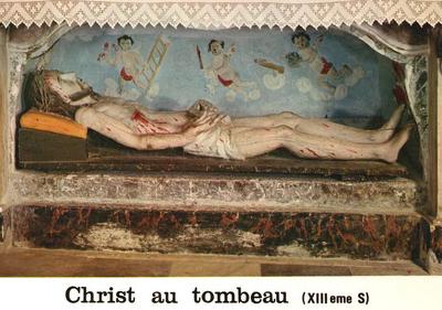 Utelle (06, A.-M.) - Alt. 800 m. - Eglise St-Véran (XIe et XVIe s., classée monument historique - A Ci. 14 - "Christ au tombeau", tronc de bois sculpté du XIIIe s.