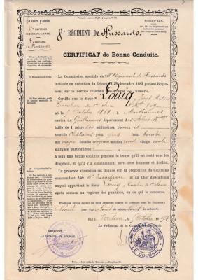 Certificat de bonne conduite - 8e Régiment de hussards - 1892