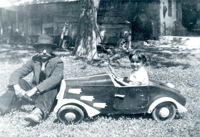 [Le side-car de la famille Gilloux devant l'ancienne Chapelle de la Sainte-Trinité - 1936]
