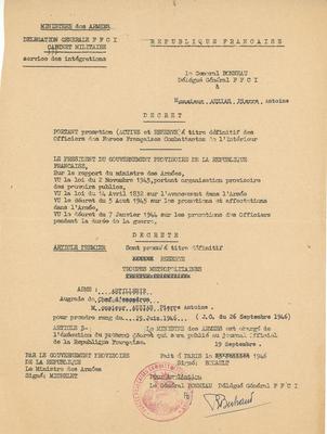 Décret portant promotion - 1946