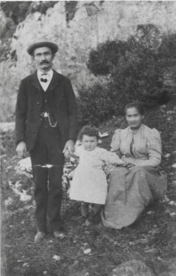 La Croix-sur-Roudoule, Victor Cagnol (tisserand (1864-1951) sa femme née Josephine Martin (1874-1934) et un enfant de l'assistance publique