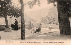 Vallée de la Vésubie, Berthemont - Terrasse devant l'Hôtel des Bains