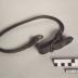 Description : Sangles de cuir pliée en deux et cousue. Aux extrémités, elle reprend sa forme initiale. A une extrémité est cousu un anneau de métal (D : 3 cm), à l'autre extrémité une boucle à passant.