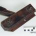 Description : Ce bouvet est constitué de deux fûts rectangulaires avec lumière et coin. Le bouvet de gauche est fixe, celui de droite est mobile. On peut régler la largeur séparant les deux bouvets. De plus, deux encoches renforcées par deux plaques de métal permettent au bouvet de droite de coulisser de haut en bas, réglant ainsi la profondeur d'attaque du bois pour cette partie de la mouluration. Les deux bouvets sont traversés par deux tiges à têtes rondes filetées du côté droit, l'espacement entre les deux bouvets étant obtenu en vissant ou dévissant des écrous à papillons. Les faces des deux bouvets s'acollant ont leur joue rapportée et collée. Les bouvets ont leur talon "biseauté". Les lumières sont trapézoïdales. L'une à droite "ouvert", l'autre à gauche "fermée". Les fers et coin du bouvet gauche sont légèrement oblique à gauche, les fers et coin du bouvet droit sont légèrement oblique à droite.