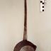 Description : Cuilleron en forme de récipient sur plan circulaire à bords légèrement évasés. Il est muni d'un bec verseur. Le manche est une bande de métal se terminant par un crochet à volute. Une patte est rivetée en trois points et pliées en deux pour assurer le maintient à l'oblique du manche.