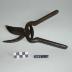 Description : Outil avec branches croisées, mobiles, articulées en "X". L'une portante et concave, l'autre à lame convexe et coupante. L'écartement des banches est assuré par un ressort plat roulé sur lui-même.