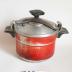 Description : Marmite sur plan circulaire à fond plat avec deux anses latérales et deux pièces métalliques chargées de maintenir en place un couvercle avec un joint pour retenir la vapeur d'eau, un bouton de serrage, des soupapes. Un panier pliant avec des anses de diamèter inférieur à celui de la cocotte. Ces pièces sont détachables et renouvelables.