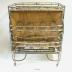 Description : Sommier à ressorts acier, rembourrrage de crin entre une toile de jute côté ressort et une toile de matelas côté opposé. Dossier et pieds en fil de fer (D : 5 mm) formant garniture à la tête et au pied du lit : garnitures en même fils de fer, repliable muni de 8 roulettes pour permettre le déplacement. Un crochet métallique permet de le maintenir fermé.
