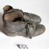 Description : Chaussures montantes en cuir marron foncé avec un talon renforcé, laçage à crochets et oeillets et une semelle de plusieurs épaisseurs cousues, une dernière semelle clouée avec des clous à large tête. Talon en caoutchouc cloué sur talon en cuir. Tige de renfort.
