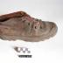 Description : Chaussure montante réalisée en cuir souple marron, avec deux pièces cousues à hauteur de la moitié du pied, large soufflet en peau et laçage à crochet. Semelle forte et talon monobloc en caoutchouc marron à larges reliefs antidérapants. Pointe renforcée, talon soulignée par une double piqûre. Renfort en caoutchouc sur tout le pourtour de la chaussure. (H du renfort 1,5 cm)