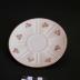 Description : Récipient en faïence sur plan circulaire à bords bas. Face inférieure galbée et renfort circulaire pour servir de base (diamètre 9 cm). Face supérieure décorée : un liseré doré tout le long du bord, la face est découpée en huit secteurs par des nervures en relief, dans chaque secteur, une tige de rosier avec deux roses.