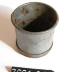 Description : Récipient sur plan circulaire, bords moyens lisses légèrement inclinés, diamètre du fond 4,5 cm, diamètre de l'ouverture 5 cm, réalisé à l'aide d'une tôle cintrée soudée verticalement, extrémité supérieure roulée, fond obtenu par emboutissage et soudé au cylindre à 0,5 cm du fond.