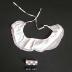 Description : Col de forme arrondie bordé d'une dentelle. Le biais qui borde le col près du cou se prolonge en lacets plats pour retenir le col autour du cou.