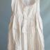 Description : Sous-vêtement sans manches, à brides (une dentelle de 3 cm de large). Fendu dans le dos sur 27 cm, tenu fermé par trois boutons et boutonnières. Le corsage est une bande de 13 cm de haut bordé vers le haut d'une dentelle de 3 cm de large. Ill est rattaché au jupon par une dentelle de 1,5 cm de large. Le jupon a une baigneuse de 7 cm de large et un volant de 24 cm cousu sur le jupon à 20 cm de hauteur, ce volant a une dentelle en entre deux et une autre en bordure.