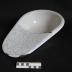 Description : Récipient à fond plat de forme triangulaire avec une base arrondie bords droits de hauteur variant de 4 à 10 cm, une plaque recouvre la parte effilée, sur l'autre à ciel ouvert les bords sont arrondis vers l'extérieur, une anse de préhension sur le côté arrondi.