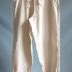 Description : Sous-vêtement masculin à large ceinture sur le devant, fermé par trois boutons et boutonnières à l'avant et à l'arrière par un lacet plat qui passe dans quatre oeillets donnant l'aisance autour de la taille. Sur le devant, de chaque côté, deux ganses permettent le passage de bretelles. Le bas des jambes fendues sur 15 cm de hauteur est fermé par un lacet plat.