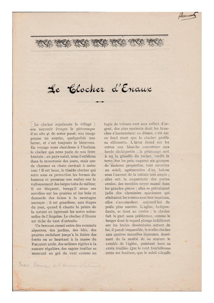 Description : Tiré à part d'un texte écrit pas Paul Canestrier intitulé le clocher d'Enaux.