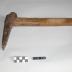 Description : Masse métallique à section carrée, Une des extrémités est effilée pour former une pointe très légèrement bombée, la longueur de la pointe est de 14 cm. La pointe s'élargit pour laisser de la place à l'œil de fixation du manche, dimensions de l'œil 4x3 cm. L'autre extrémité est refoulée, elle a une surface ovale, les arêtes sont rabattues par l'usage intensif (dimensions 5,5x4 cm)La surface de frappe est pratiquement au niveau du manche.