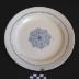 Face supérieure : feston bleu à mi-hauteur du bord. Partie centrale avec rosace bleue et des motifs floraux stylisés (spirales).