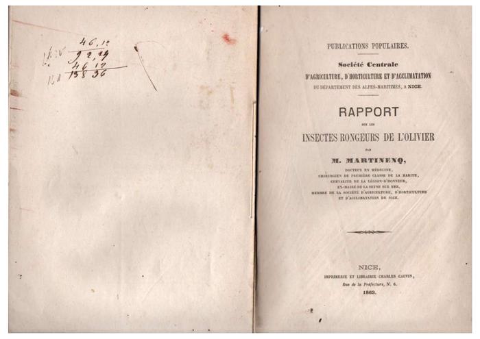 Description : Rapport de Louis Martinenc 1 sur les insectes rongeurs de l'olivier: