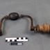 Description : arbre en "C"; pivot rivé à une conscience en bois tourné et monté à virole. Boîte carrée à vis de blocage ; poignée "folle" ovoïde au médian.