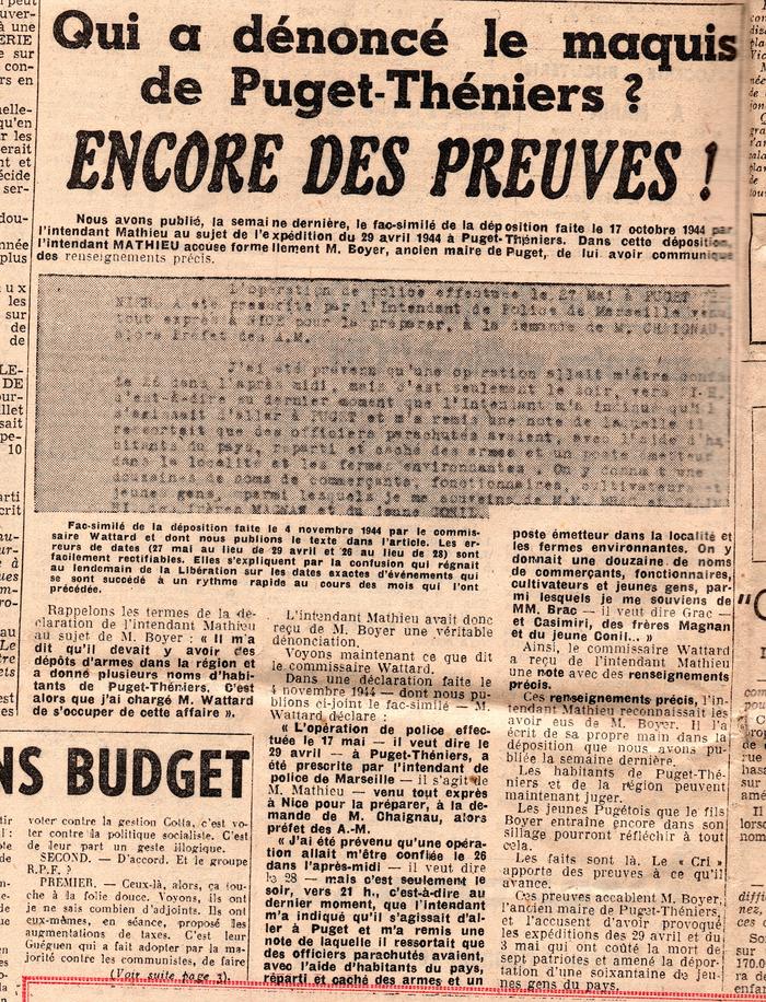 Qui a dénoncé le maquis de Puget-Théniers ? Encore des preuves!